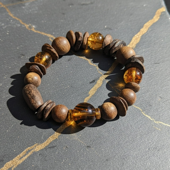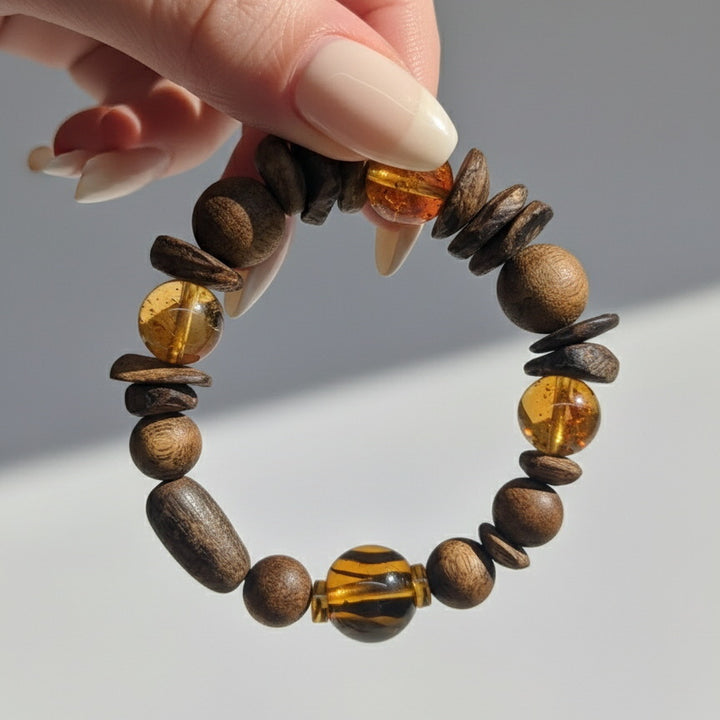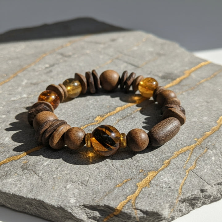 Agarwood Citrine Energy Bracelet - Natural Wood Bead Amber Crystal Bracelet, Unisex