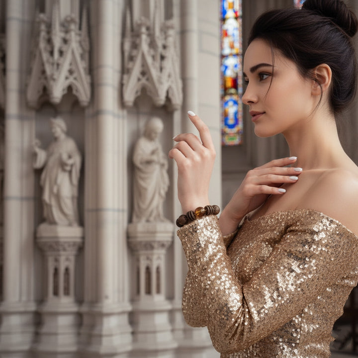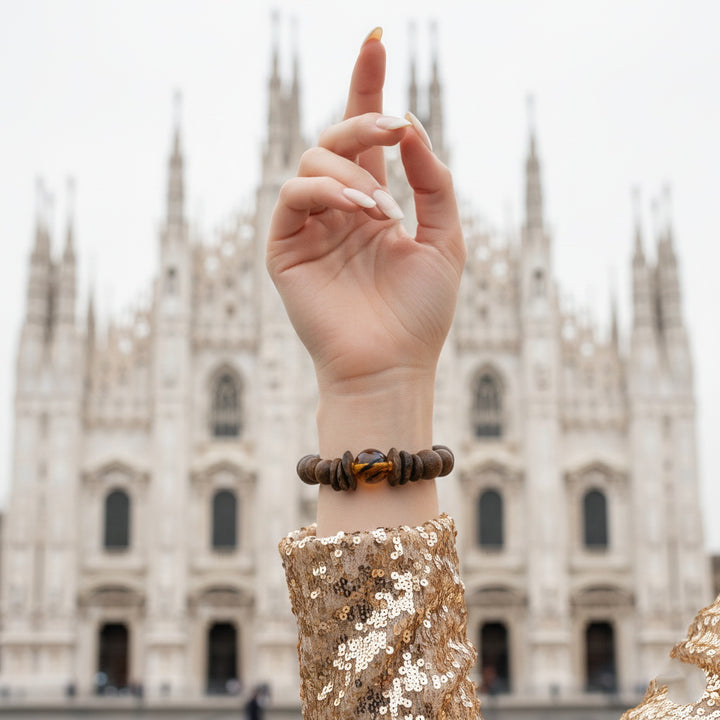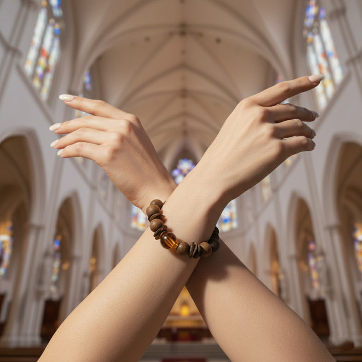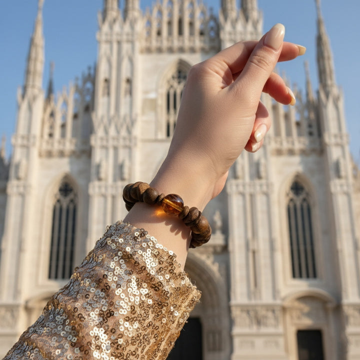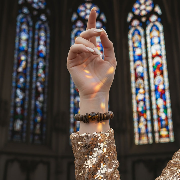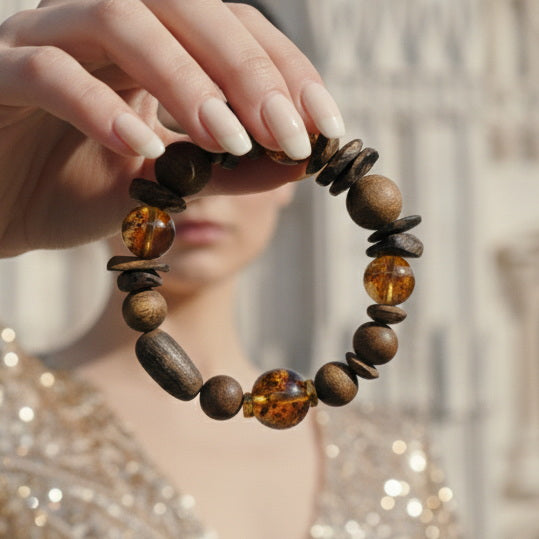 This "Earth's Radiance & Inner Harmony" bracelet is our profound tribute to the beauty of nature and spiritual power. The design inspiration stems from the pursuit of balance and abundance, skillfully intertwining precious natural agarwood beads with sparkling citrine beads. Our carefully selected agarwood, with its unique woody texture and deep aroma, brings a grounding, earthy energy; while each citrine bead, with its warm amber hue, captures and radiates a sun-like positive glow.