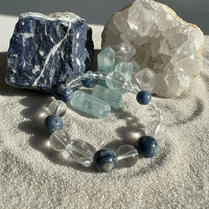 Deep Ocean Serenity: Natural Sodalite & Clear Quartz Crystal Bracelet - Harmony of Wisdom & Calm