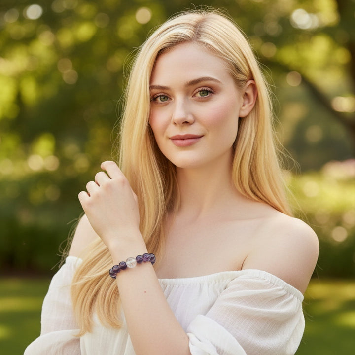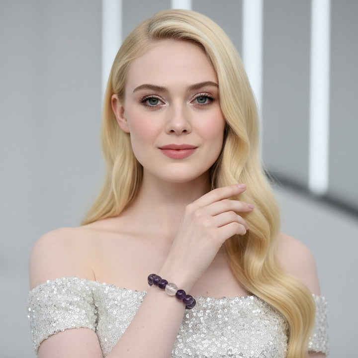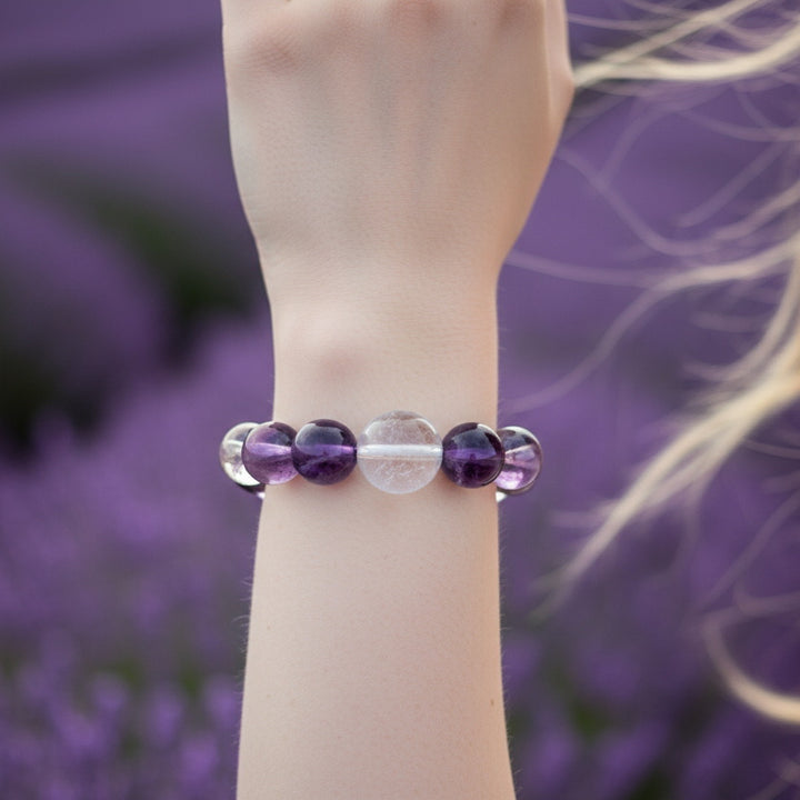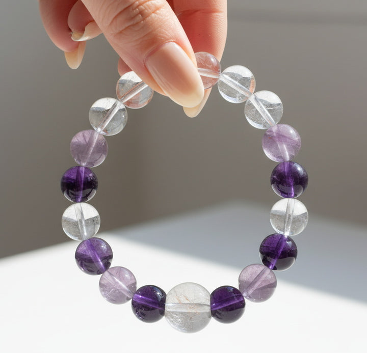White Crystal: As a luminous accent in this bracelet, white crystal not only visually balances the richness of amethyst but also plays a crucial role in energetic amplification and purification. It ensures that the amethyst's gradient energy remains pure and effective, clearing negative interference and bringing mental focus and clarity to the wearer.