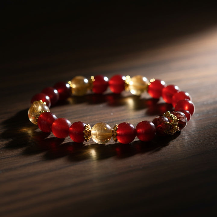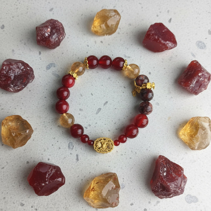 Lucky Wealth Natural Red Agate & Golden Rutilated Quartz Bracelet - Women's Energy Crystal Jewelry