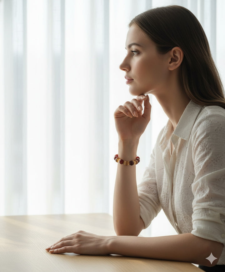 The design philosophy of this bracelet is to create a powerful energy field through the grounding energy of Red Agate and the expansive energy of Golden Rutilated Quartz. This field not only protects the wearer from negative energies but also actively guides the universe's abundant energy into their life. Whether facing challenges at work or opportunities in life, it will be your most steadfast energy companion, helping you achieve your desires and ascend step by step.
