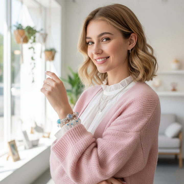 We have selected high-quality natural crystal and blue gemstone bracelet materials, paired with exquisite silver accessories that shimmer like ocean waves, perfectly complementing the natural beauty of the gemstones. Every detail is designed to create a piece that is not just a fashion accessory but also a jewelry accessory that enhances personal energy and promotes physical and mental well-being. Whether as a gift choice for daily wear or for those seeking specific energies, this bracelet is an ideal option. It helps you find tranquility in a busy life, enhances personal charm, attracts positive energy, and makes every wear a connection with natural energies.