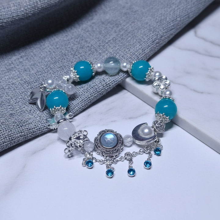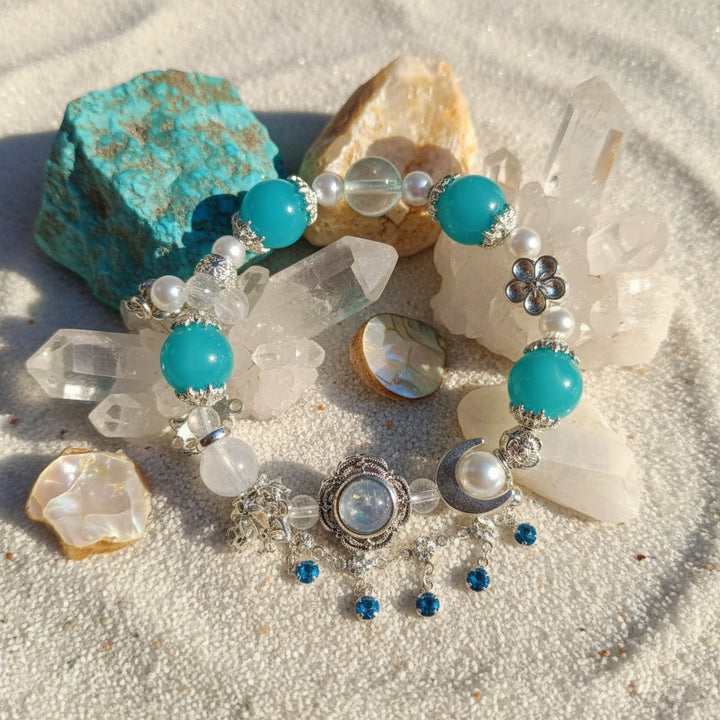 This bracelet gathers the gentle energies of the deep ocean and the bright moonlight, specifically crafted for modern women seeking inner peace, enhanced intuition, and smooth communication.