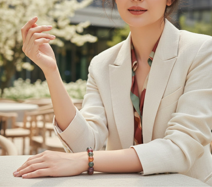 The design philosophy of this crystal bracelet stems from the pursuit of nature's vitality and inner harmony. We believe that every natural crystal holds the Earth's wisdom and healing energy. Wearing this energy bracelet, you will experience the emotional balance and spiritual well-being it brings. The wealth crystal energy of green phantom aids career growth and financial accumulation; red and orange phantoms ignite passion, enhancing the aura of a lucky bracelet to attract love and success. The overall design is simple yet elegant, with smooth beads that are comfortable to wear, showcasing your unique taste whether for daily wear or special occasions.