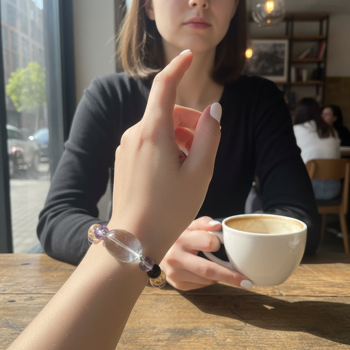 This unique crystal bracelet is a meticulously designed piece of energetic art, aiming to bring profound balance, purify the mind and body, and attract abundance to the wearer. It gathers the distinct frequencies of various natural crystals, forming a harmonious energy field.