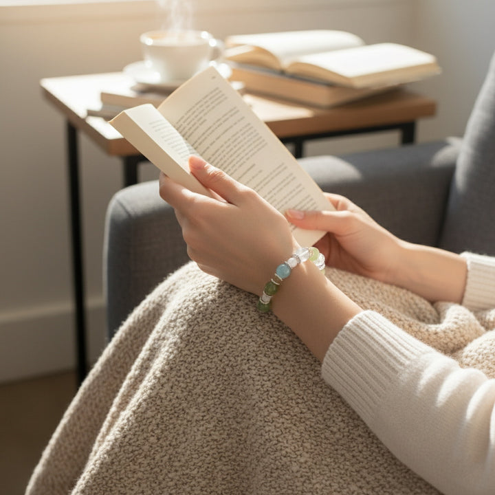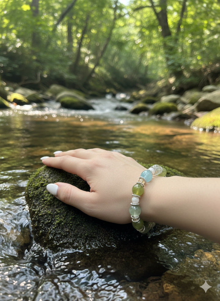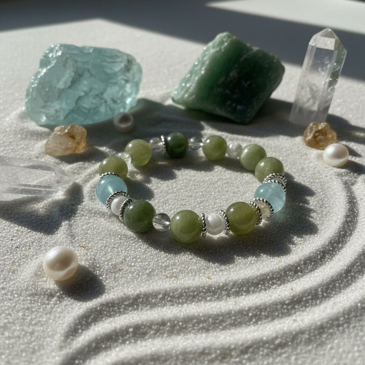 This uniquely designed bracelet brings together the profound serenity of the ocean and the healing energies of the earth.