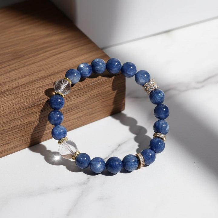 Natural Kyanite & Clear Quartz Energy Bracelet - Enhance Communication, Intuition & Balance