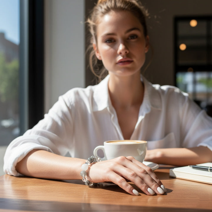 By combining these two crystal types, our bracelet not only creates an elegant visual contrast but also achieves a perfect synergy at an energetic level. The Phantom White Quartz offers spiritual upliftment and pure guidance, while the Black Tourmalated Quartz provides steadfast protection and the power to act. Wearing this crystal bracelet, you will experience a wonderful sense of internal and external balance—like finding your anchor in a bustling world, clearly perceiving your direction, and possessing the inner strength to overcome challenges. It is ideal for individuals seeking spiritual growth, emotional stability, and those who need extra protection and focus in their daily lives.