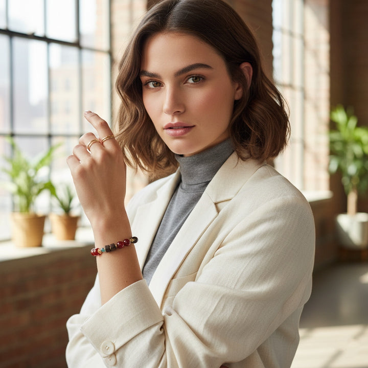 From the outset of the design, we focused on elements from nature with the most healing and aesthetic value. The carefully selected Red Agate beads, with their warm and full color, each embody the vitality and passion from deep within the earth. As a renowned healing crystal, Red Agate is widely believed to enhance life force, boost confidence, and bring emotional stability and protection.