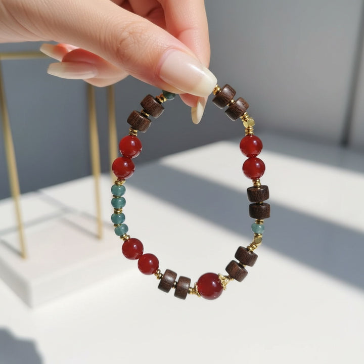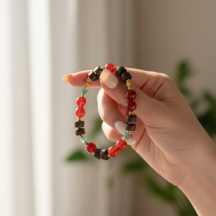 To perfectly complement the fiery energy of Red Agate, we cleverly incorporated precious Sandalwood Bracelet beads. The profound calm and subtle fragrance of Sandalwood not only add to the bracelet's Zen feel and texture but also, on an energetic level, provide powerful purification and balancing effects, allowing wearers to find peace amidst the hustle. This combination of materials makes it an ideal Zen bracelet and Yoga bracelet.