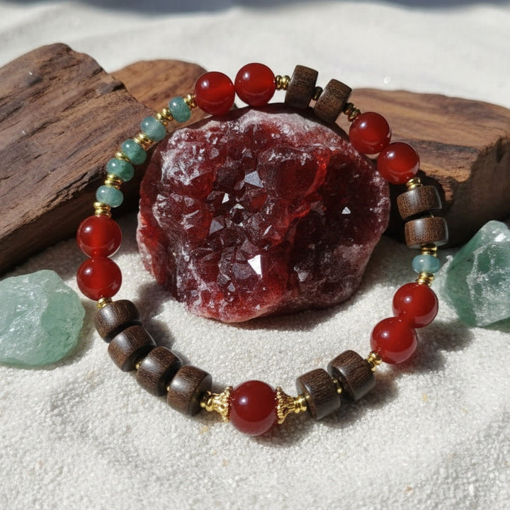 Natural Red Agate Sandalwood Bracelet - Balancing & Protective Energy Crystal Healing Jewelry