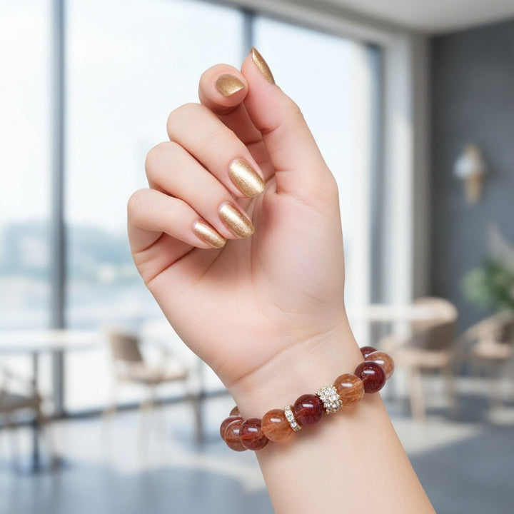 Natural Red Phantom Quartz Bracelet for Women - Wealth & Career Luck Crystal Jewelry