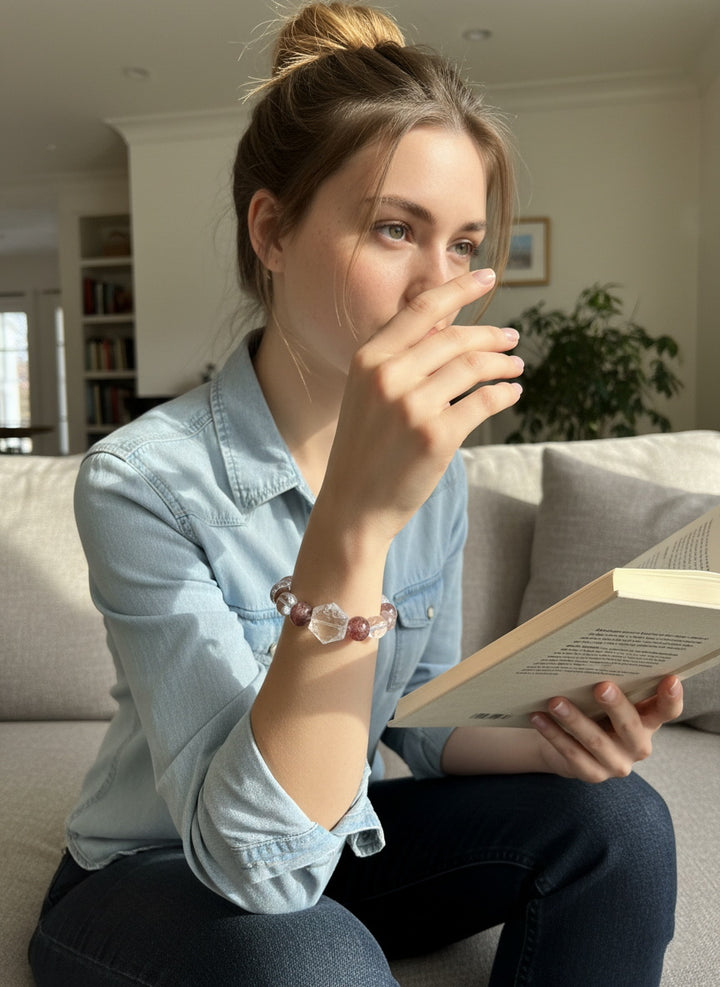 Harmony of the Heart: Strawberry Quartz & White Crystal Energy Bracelet