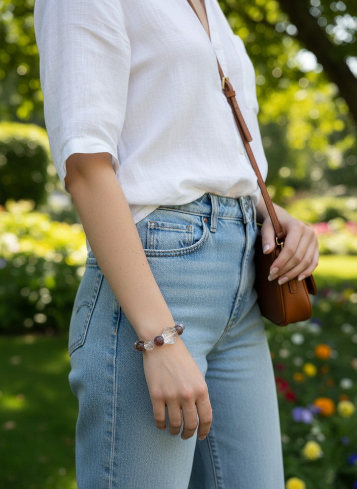 White Crystal, regarded as the "Master Healer" of crystals, possesses comprehensive cleansing, balancing, and energy-amplifying properties. It clears negative energies, enhances clear thinking and focus, helping the wearer make wiser decisions and achieve higher efficiency in studies and work. The carefully integrated geometric cut White Crystal beads in the bracelet not only add a modern and artistic touch visually but also strengthen White Crystal's energy-focusing and amplifying effects, channeling universal wisdom and light like a magnifying glass.