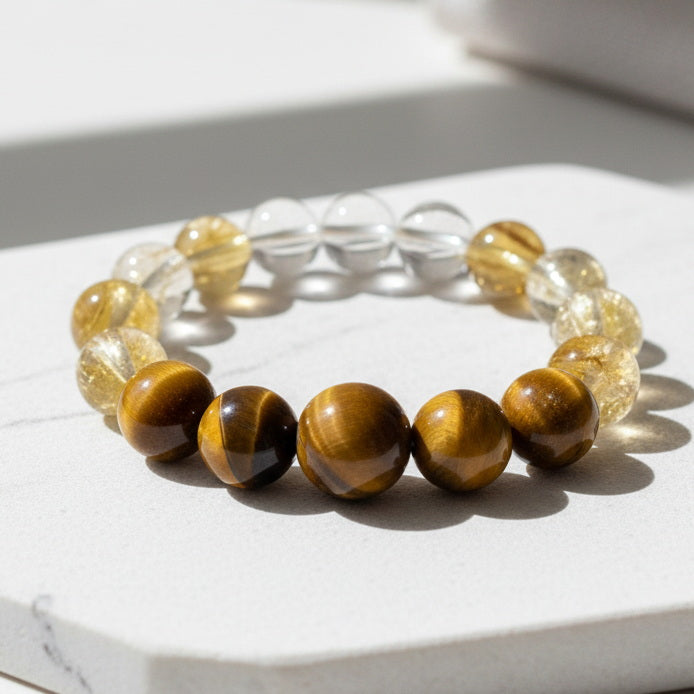 Discover our meticulously designed Natural Tiger's Eye Rutilated Quartz Clear Crystal Energy Bracelet, a unique piece of crystal jewelry that blends the essence of heaven and earth with modern aesthetics. The inspiration behind this energy bracelet stems from a reverence for natural power and a pursuit of personal growth. We understand that many consumers are not just looking for an accessory, but a natural crystal bracelet that can bring positive impact.