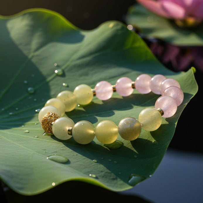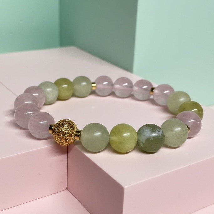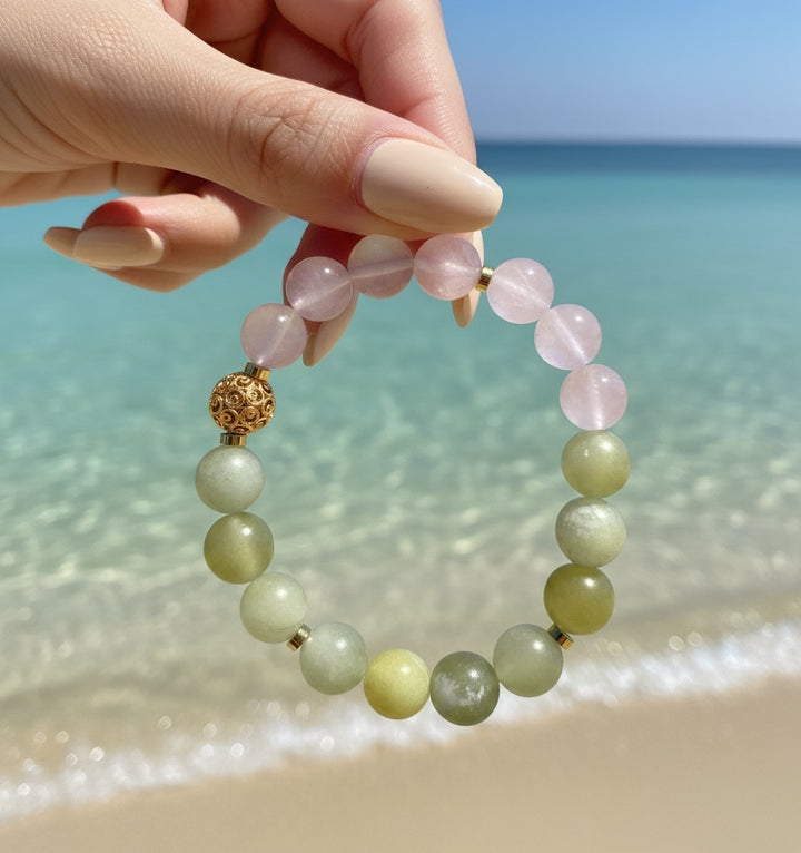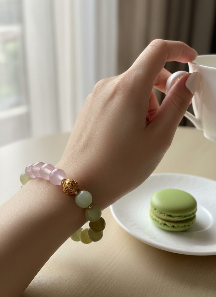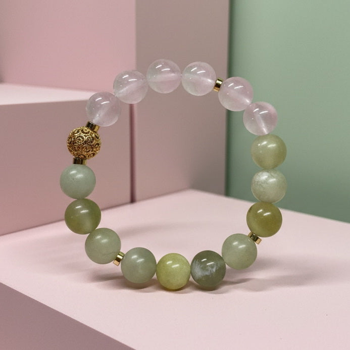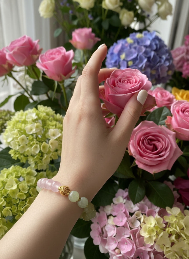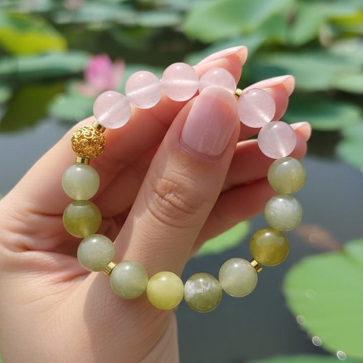Emotional Nourishment & Balance: The gentle energy of Xiuyu Jade and the loving frequency of Rose Quartz form a perfect synergy in this bracelet. This combination helps soothe fluctuating emotions, provide emotional support, and make the wearer feel more peaceful and content.