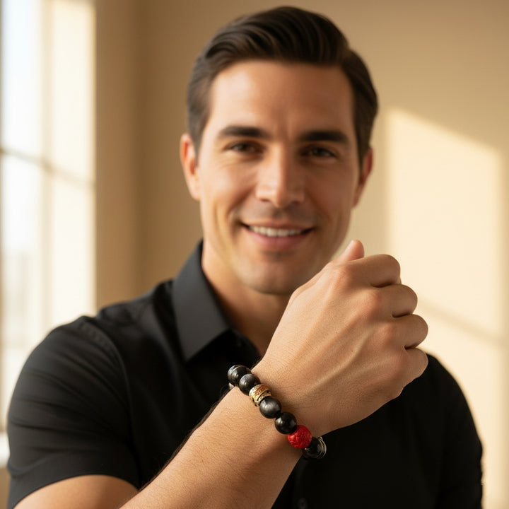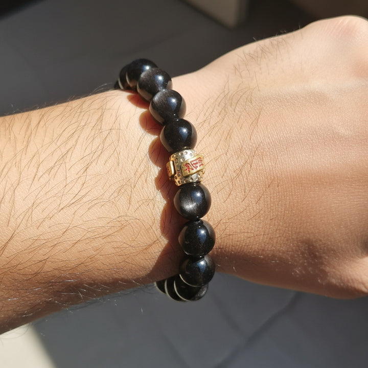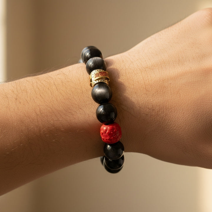 Obsidian Cinnabar Bracelet | Taoist Talisman Energy Crystal Bracelet | Unisex Protection Luck Wealth Jewelry