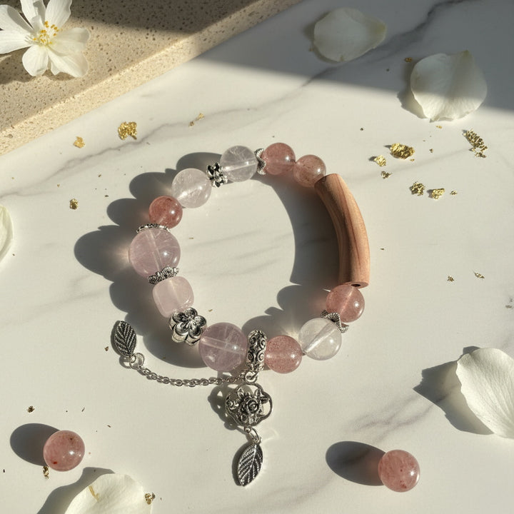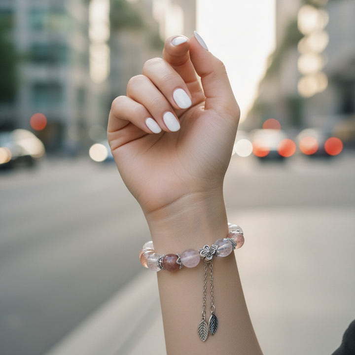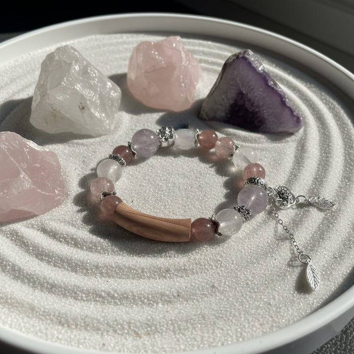 This "Heart's Radiance · Spiritual Guardian" natural crystal bracelet is meticulously crafted for those seeking emotional balance and positive energy. The design inspiration draws from the purest healing crystal jewelry found in nature, combining the gentle essence of a pink quartz bracelet, the vibrant energy of a strawberry quartz bracelet, and the purifying power of a clear quartz bracelet, aiming to provide holistic nourishment for your mind and spirit.