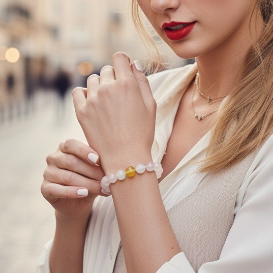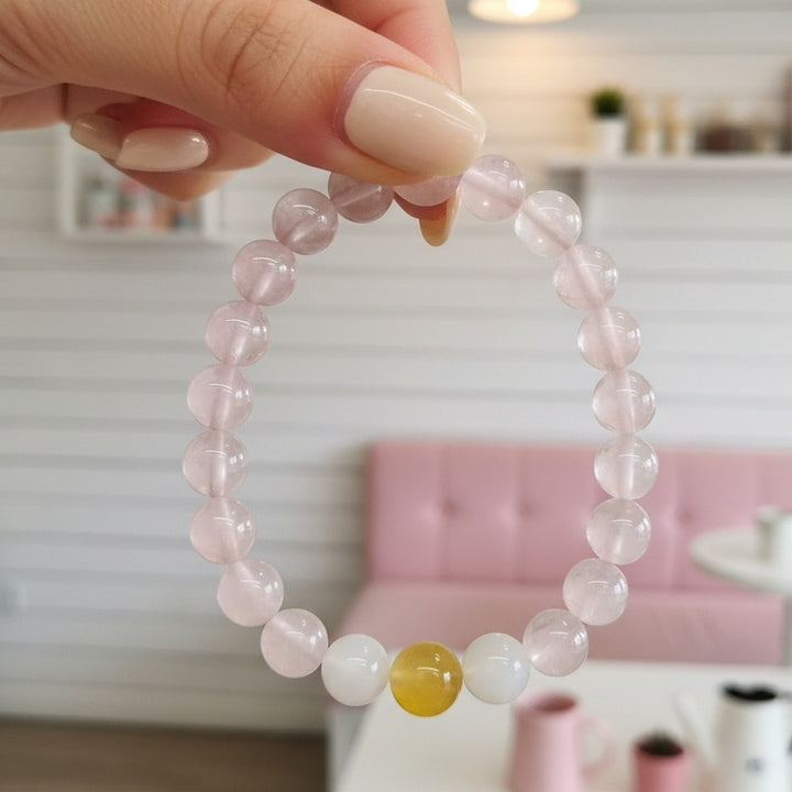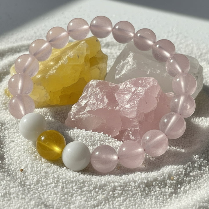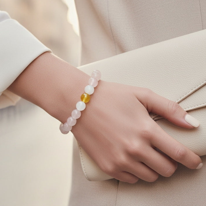 Rose Quartz Citrine White Crystal Bracelet - Natural Crystal Energy Healing Jewelry | Love Wealth Harmony
