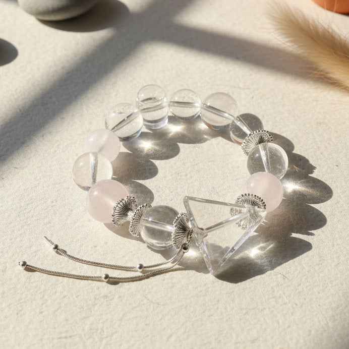 So, when you wear this bracelet, you're not just wearing beauty, but integrating the gentle healing of Rose Quartz with the powerful purification and amplification energy of Clear Crystal. It helps you attract love and abundance, while keeping your mind clear and focused, allowing you to maintain your best state in daily life. Doesn't that sound amazing? Bring it home and let it be your "Luminous Guardian"!