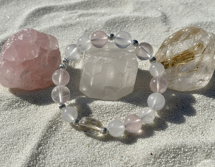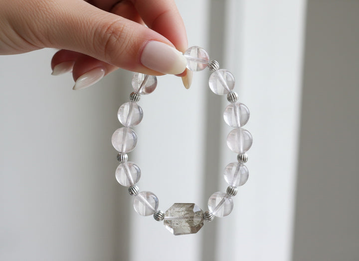 The "Mystic Energy Conductor" Phantom Quartz & Rose Crystal Bracelet is a perfect fusion of natural beauty and mystical energy. We meticulously selected high-quality natural crystals – including the pictorially textured Phantom Quartz and the warm-toned Rose Crystal. The design philosophy aims to create a crystal bracelet that functions both as an exquisite fashion jewelry piece and a powerful energy healing tool.